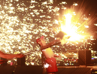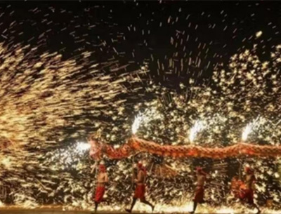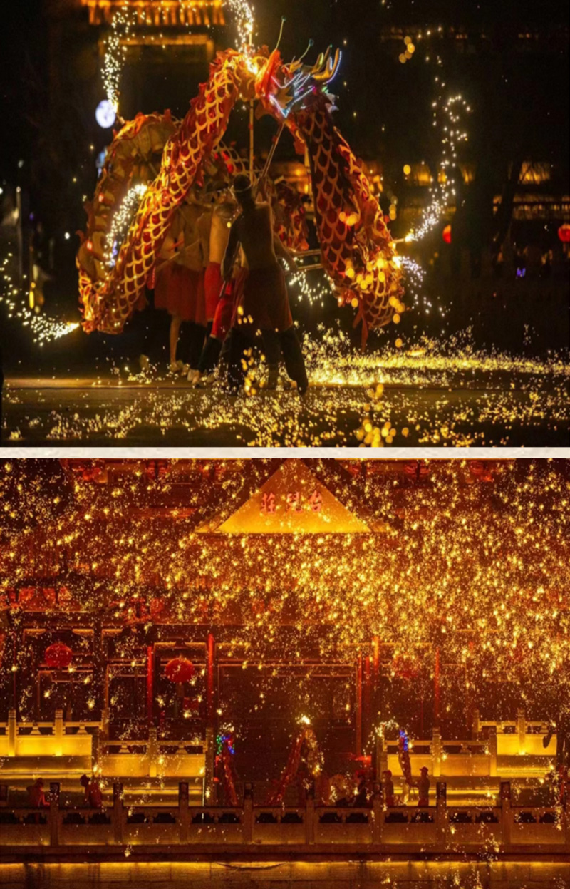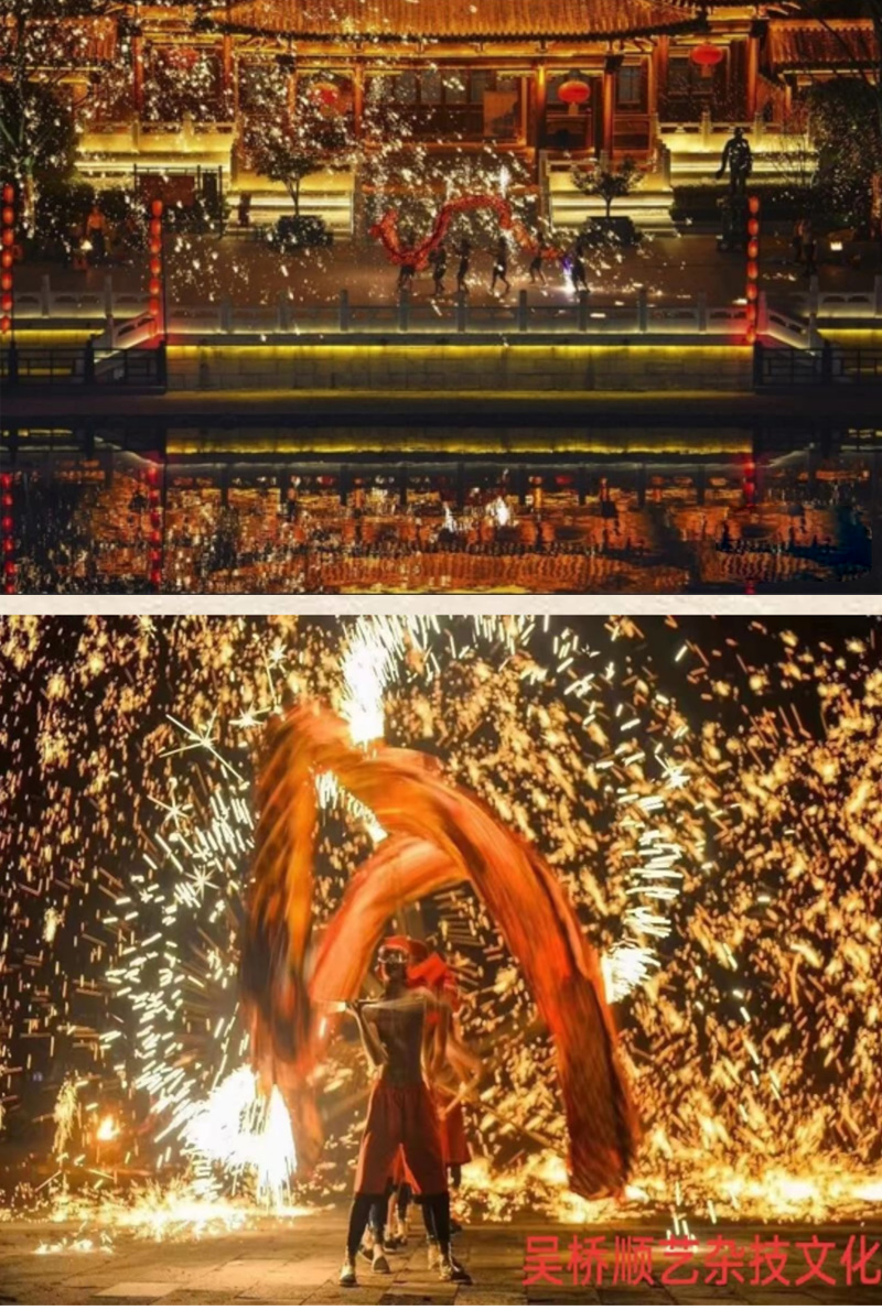公司秉承著發展與創新,發掘與傳承,努力踐行二十大精神,振子鄉襯文化,遍訪滄州的老藝人又在回川的重慶尋找到了老藝人王天橋,由老藝人指導,然后結合北派舞龍,南派火龍,滄州武術,雜技的基本動作創新編排一系列的高難度動作,發掘并傳承了具有千年歷史的“火龍鋼花”。使得打鐵花的同時呈現出一種“人在龍中舞,龍在火中飛”的震撼畫面。